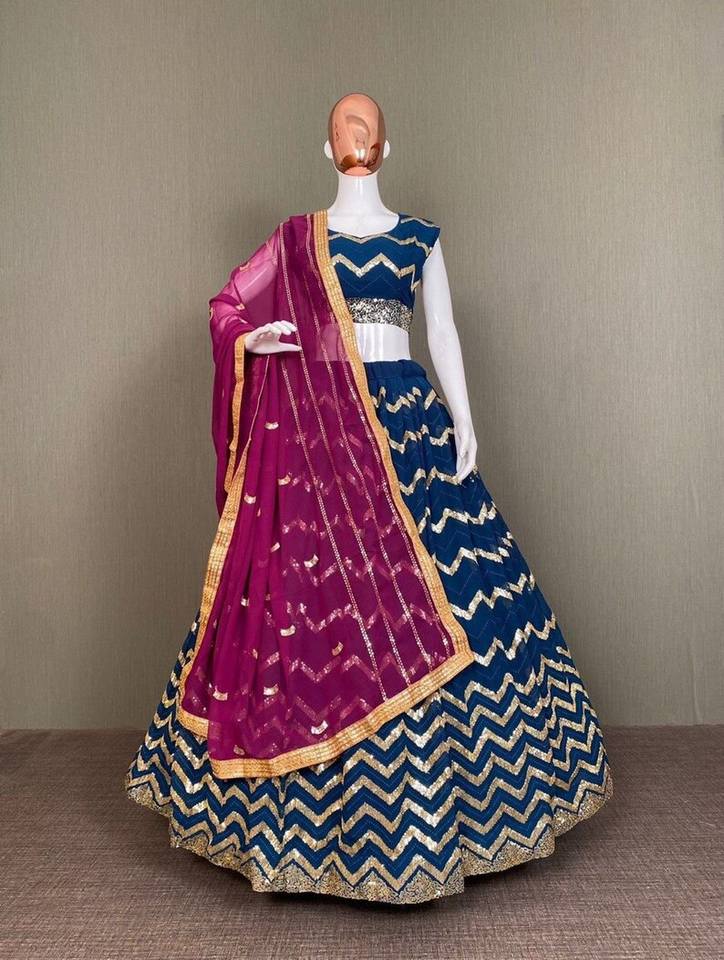 Recién llegado Georgette adornado con hermoso brillo Faux Georgette Secuencia Bordado Trabajo Lehenga Choli con Dupatta