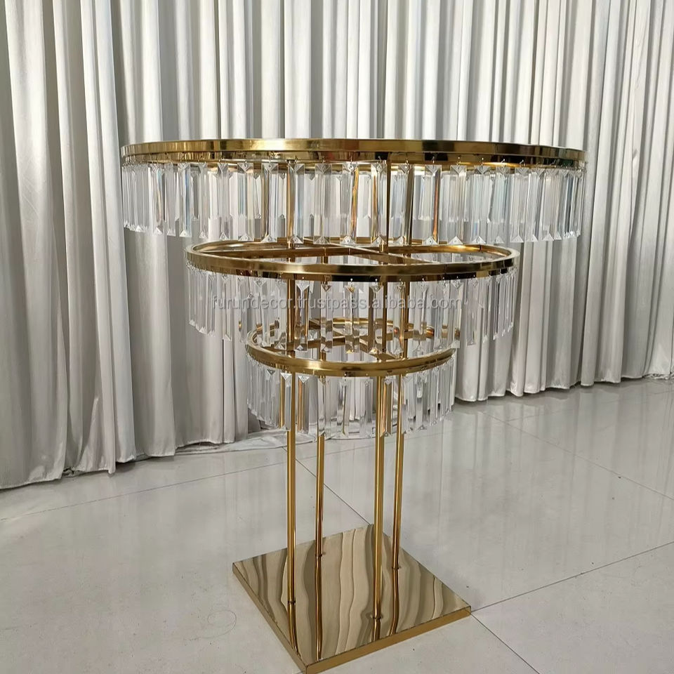 Soporte moderno de flores doradas con cortina transparente para mesa de centro de mesa boda recién llegado diseño de exhibición de marco floral