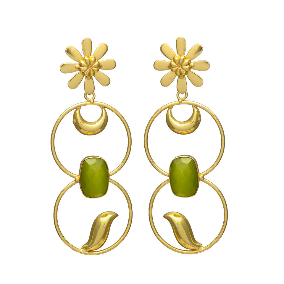 Pendientes colgantes de diseño único chapado en oro recién llegado con pendientes de latón con piedras preciosas de peridoto