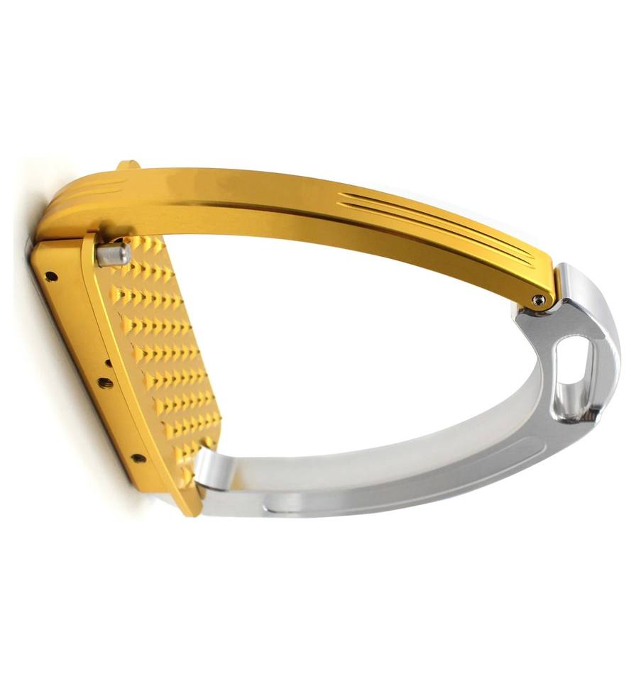 Recién llegado, estribos para montar a caballo en tono dorado, acabado elegante de acero inoxidable pulido, Exportación de fábrica OEM
