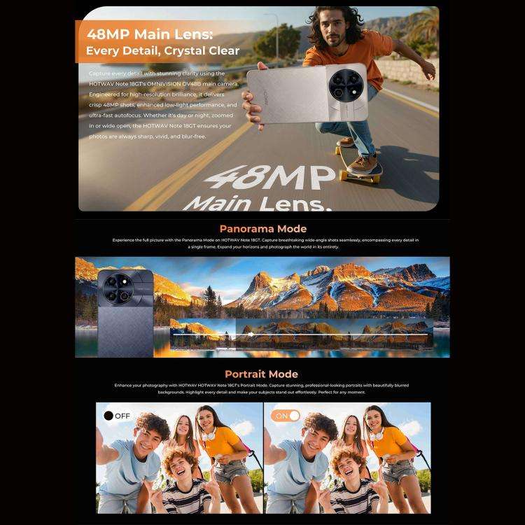 Nuevo HOTWAV Note 18 GT 8GB+256GB con Identificación por Huella Dactilar, Pantalla de 7.2 Pulgadas, Smartphone Android 15