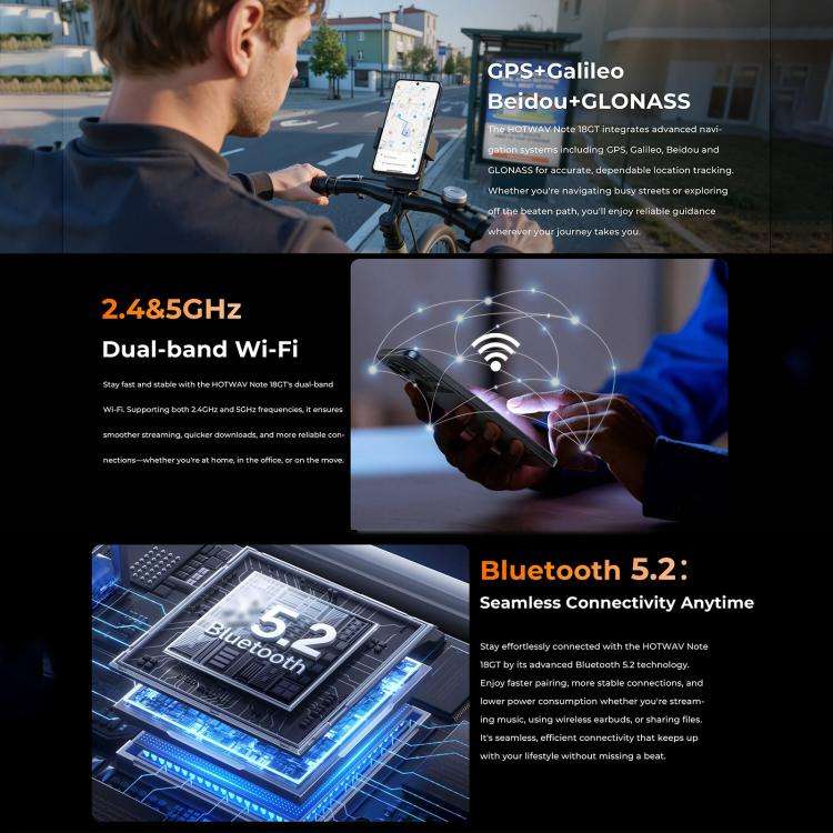 Wi-Fi:802.11ac/a/b/g/n, 2,4 GHz/5,0 GHz
