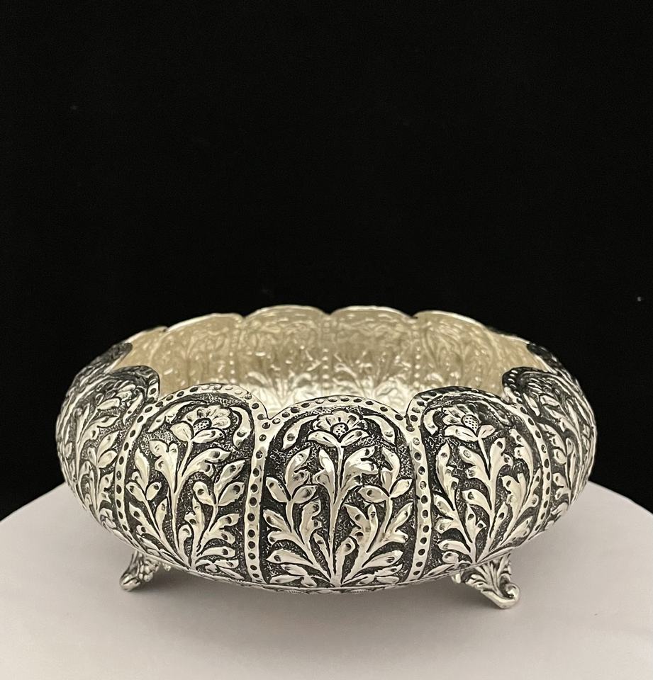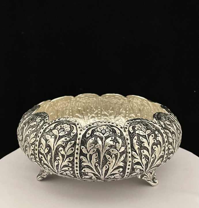 Urli Chapado en plata hecho a mano para ceremonia haldi, diseño de elefante grabado, decoración india de latón urli