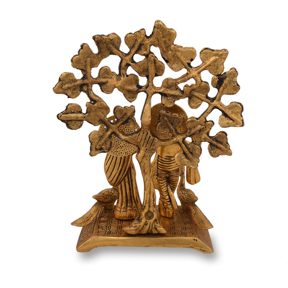 Estatua de Radha Krishna chapada en oro hecha a mano, Estatua con diseño de árbol lateral trasero para decoración del hogar y regalo, novedad