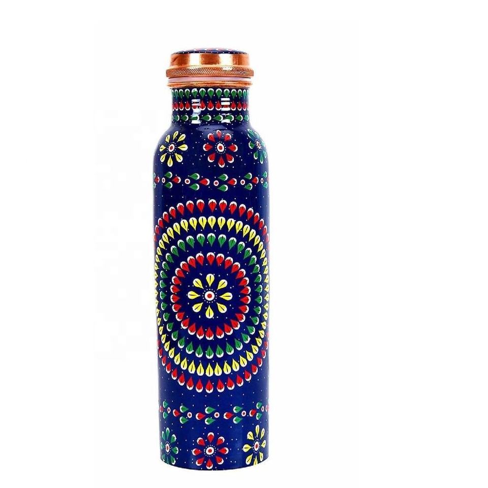 Botella de agua de cobre impresa hecha a mano, botella de agua para yoga, recipiente de cobre Ayurvédico, botella de agua de cobre hecha a mano, novedad