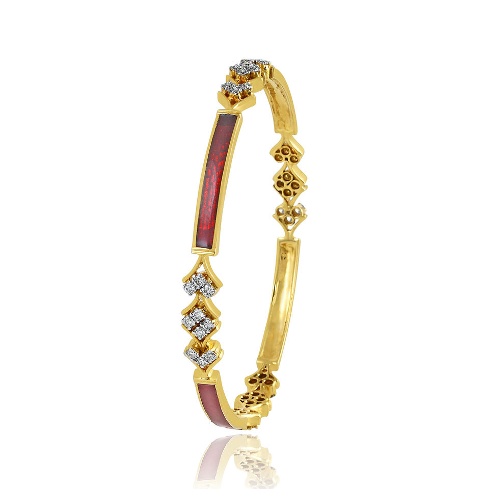 Nueva llegada de alta calidad de Plata de Ley 925 chapado en oro de piedra de circón rojo esmalte brazalete para mujer al por mayor brazalete fino