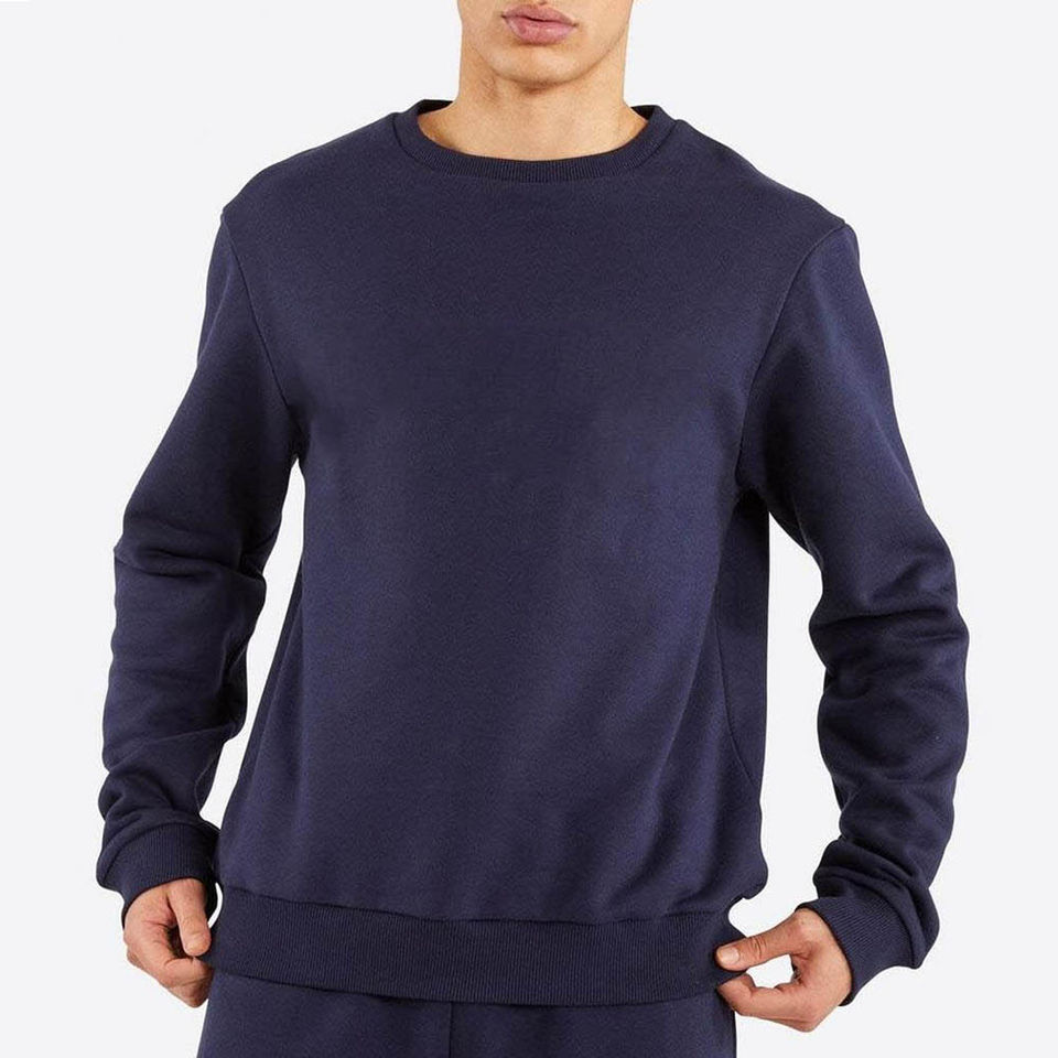 Nueva llegada, sudadera de alta calidad, transpirable, básica, color azul marino oscuro, cuello redondo, para hombre, sudadera personalizada de mezcla de algodón a precio de fábrica.