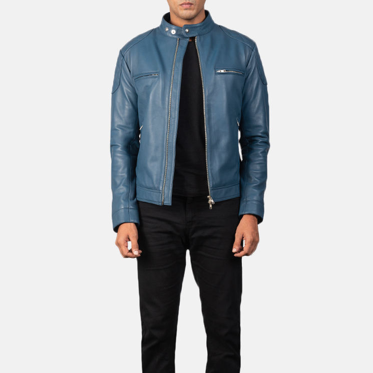 Chaqueta de Cuero para Motociclista, Nueva, de Alta Calidad, Personalizada, con Cierre, Ajustada, Azul, Impermeable, para Hombre