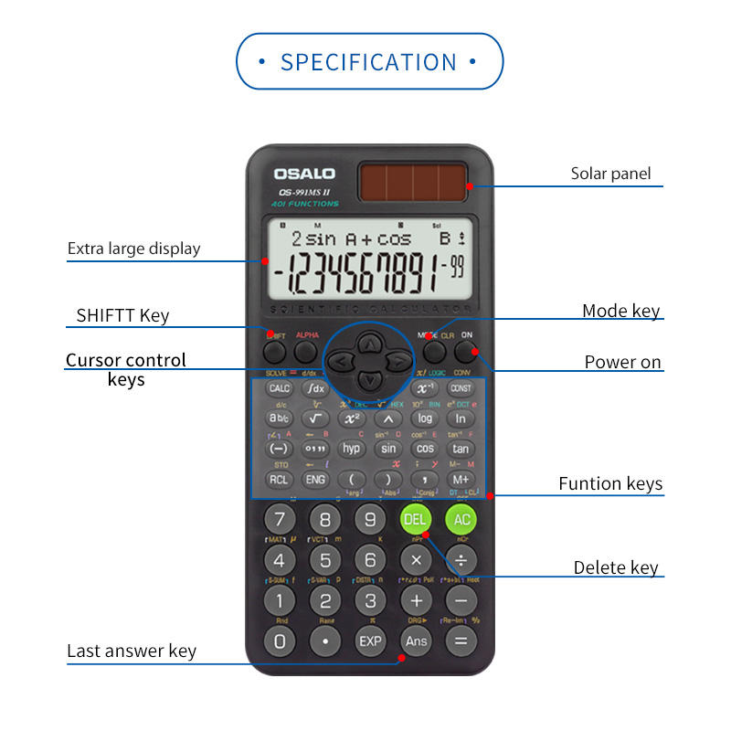 Nombre del producto:Calculadora científica electrónica OS-991MS II