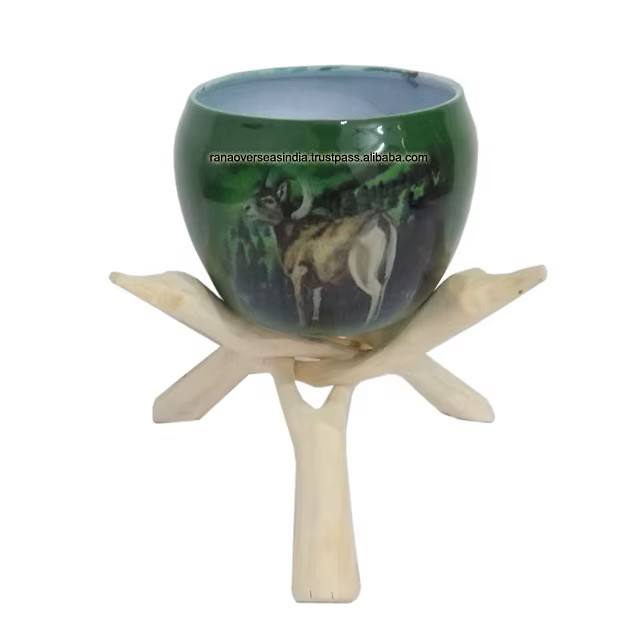 Maceta estampada de metal con soporte de COBRA de madera para decoración de exterior o interior