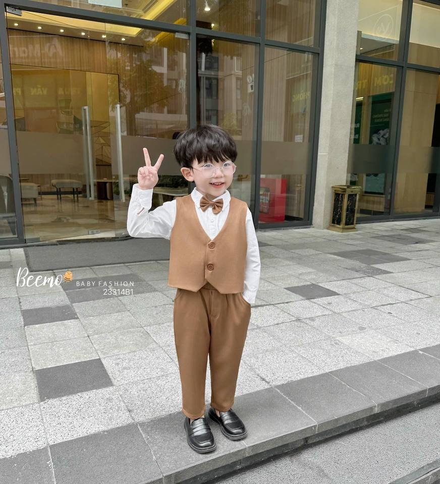 Conjunto de chaleco a rayas de 5 piezas de tendencia novedosa para bebés, ropa Formal de otoño e invierno de talla grande, venta al por mayor de Vietnam