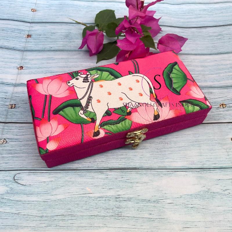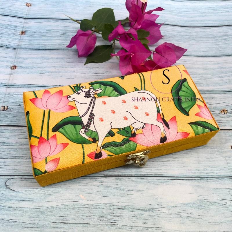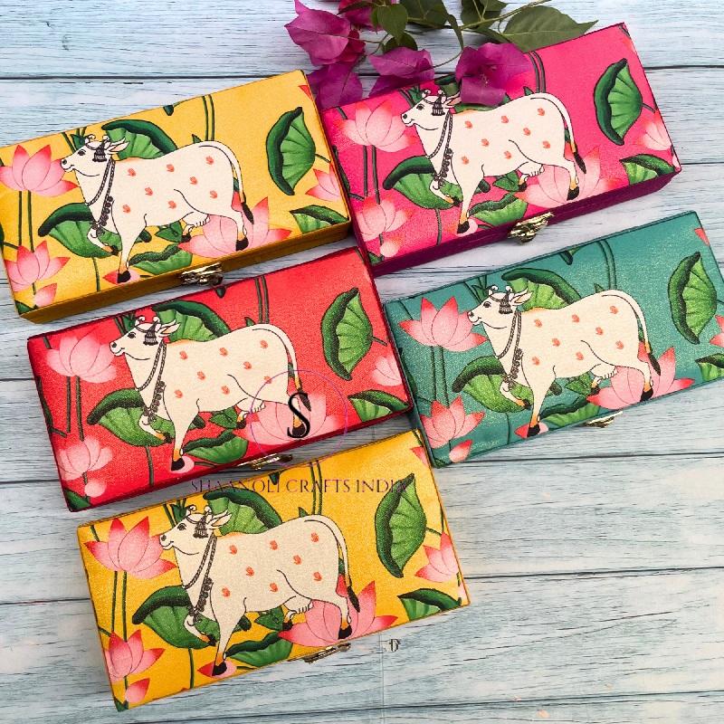 Nueva llegada indio tradicional hecho a mano MDF Pichwai impreso caja regalo Mehndi favores boda Favor devolución regalo dama de honor caja