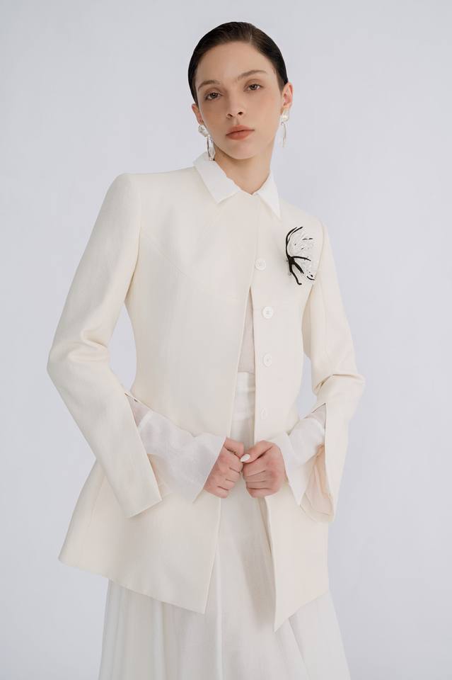 Nueva llegada Jewel Neckline Blazers de mujer de manga larga superventas ALAI TAILORED BLAZER Sand Jacquard Fabric Private Label