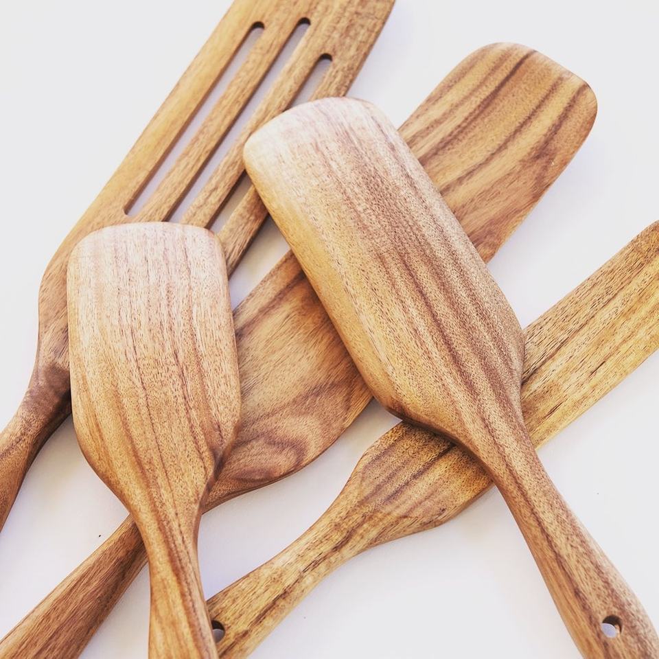 Recién llegado, juego de utensilios de cocina, espátulas de madera de acacia hechas a mano, herramientas de calor antiadherentes personalizadas, nuevos utensilios