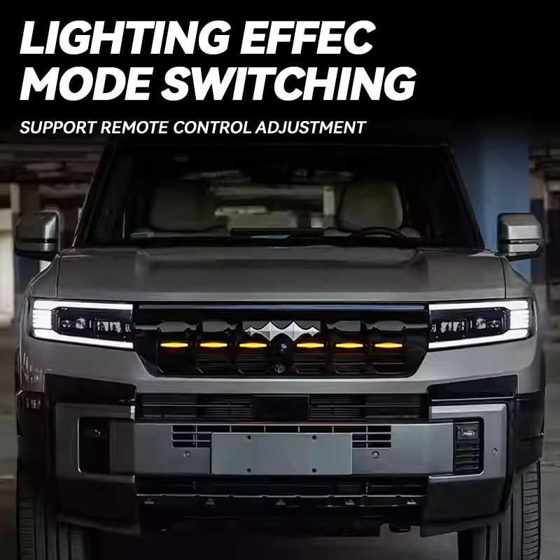 Nueva llegada Rejilla LED Luz ambiental Emblema delantero Luz Centro Rejilla Marcador Luz para BYD Leopard 8 Accesorios