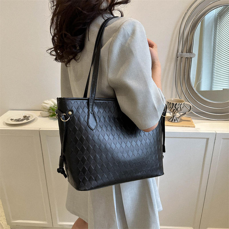 Nuevo Bolso Tote de Gran Capacidad, Bolso de Hombro con Cierre de Cremallera de PU, Bolso Tote Informal de Gran Capacidad, Bolso de Mano Rómbico Elegante para Mujer