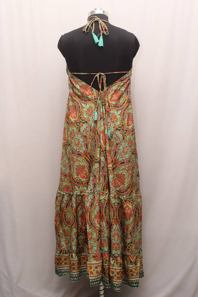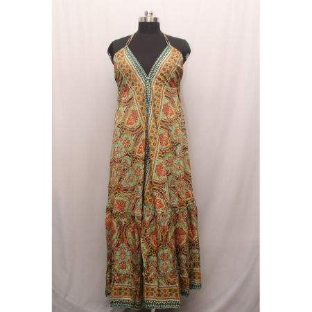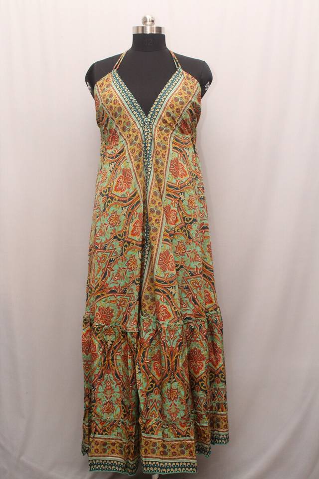 Nueva llegada última espalda descubierta completa vacaciones de verano caliente bohemio sólido hasta el suelo con cuello en V Maxi vestido de vacaciones