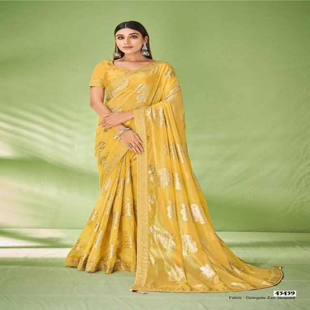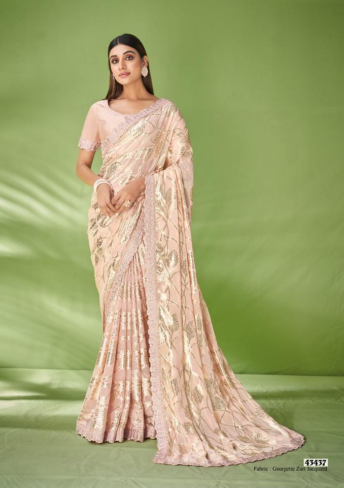 Nombre del producto:Hermosa Georgette Zari Jacquard Saree Foil impresión y bordado de trabajo