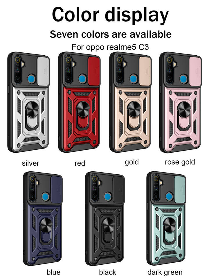 Nueva llegada funda de teléfono con protección de lente para OPPO Realme 5 cubierta a prueba de golpes con soporte