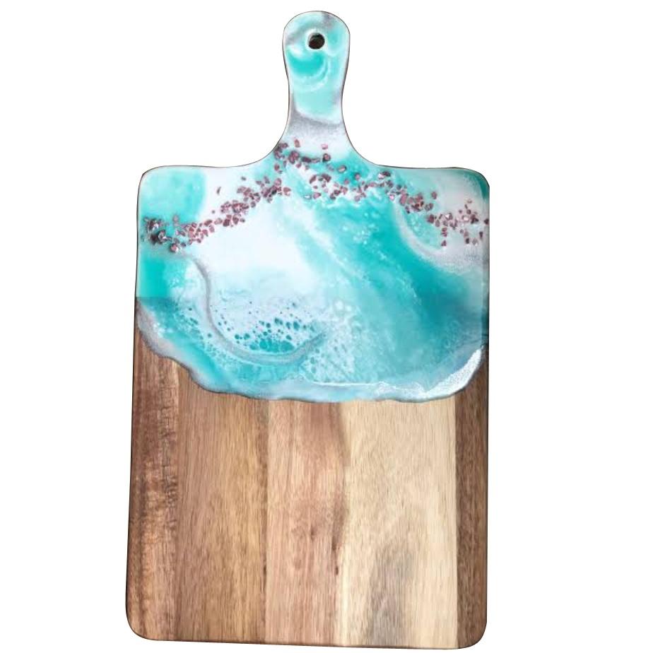 Tabla de Madera para Servir Pizza con Diseño Elegante, Tabla de Cortar de Madera con Mango, Tabla de Madera con Resina
