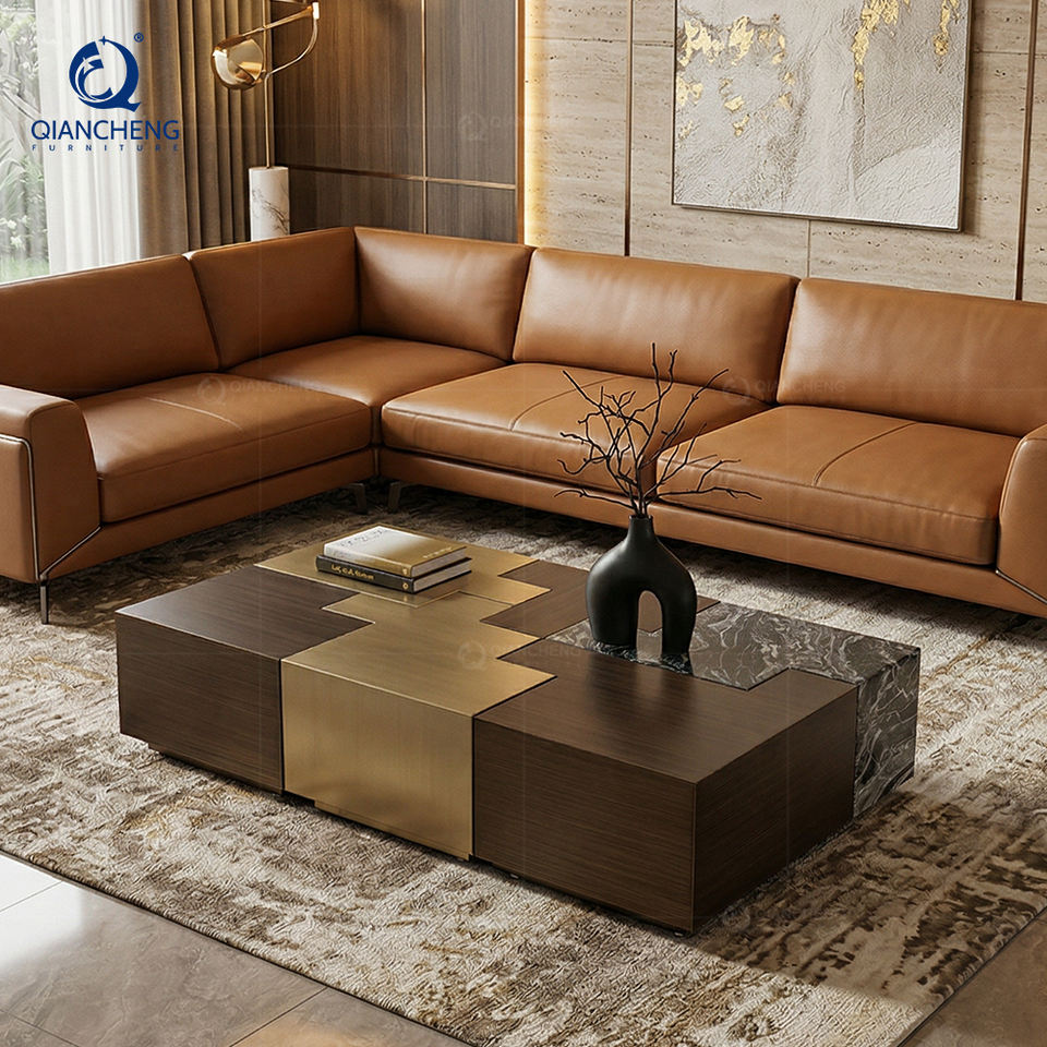Mesa de Centro Modular de Lujo, Estilo Italiano, con Diseño de Rompecabezas, para Sala de Estar Moderna, en Mármol y Metal