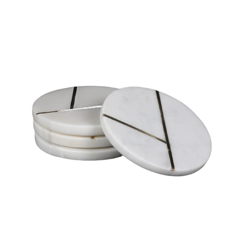 Atractivo posavasos de mármol con incrustaciones de Metal, decoración de mesa, posavasos para beber, alfombrillas y almohadillas, posavasos para Bar y oficina en casa a la venta