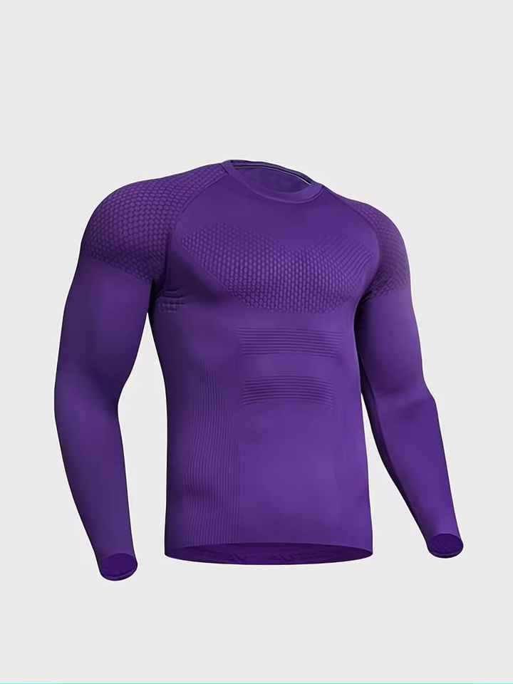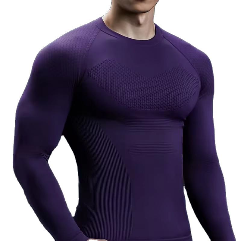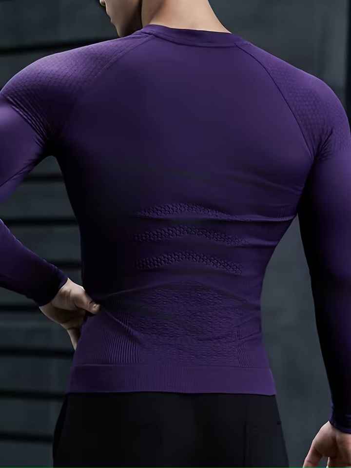 Nueva Camiseta de Compresión de Manga Larga para Hombre, Corte Ajustado, Diseño Estampado Sólido, para Gimnasio, Correr y Actividades al Aire Libre