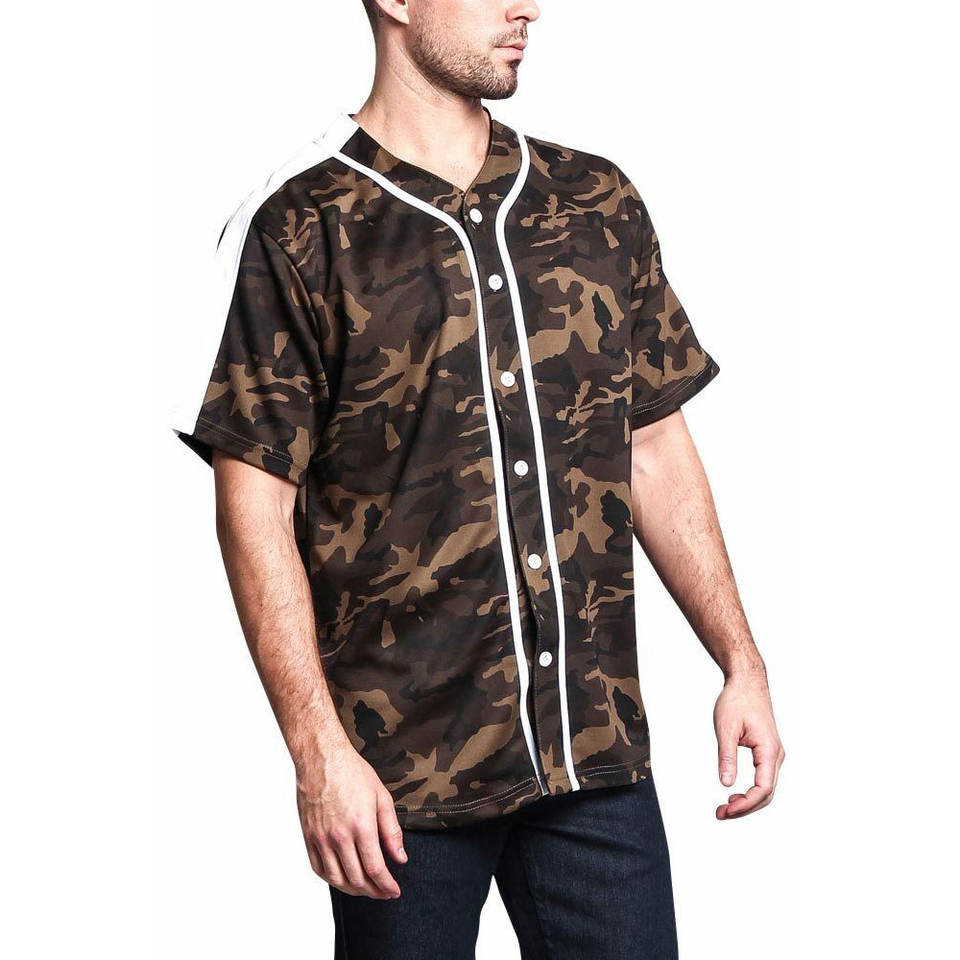 Uniforme de béisbol para hombre recién llegado, diseño de camuflaje, jersey de botón completo, camisetas de béisbol impresas al por mayor personalizadas, sublimación