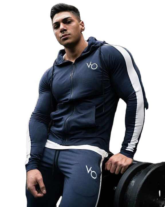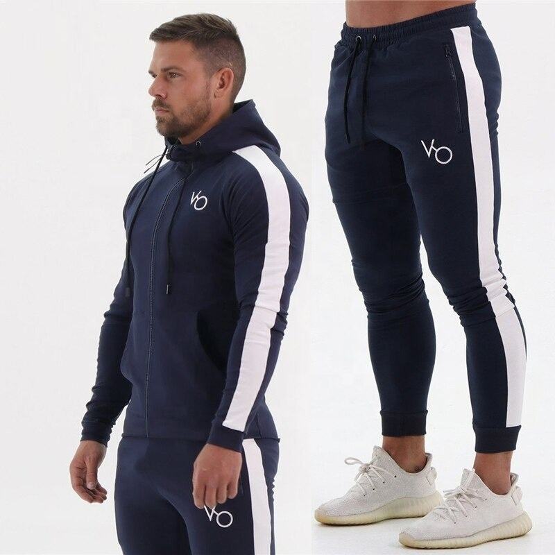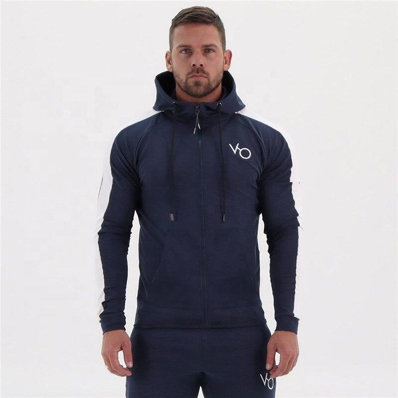 Ropa de entrenamiento para hombre, traje de chándal con logotipo bordado, capucha con cordón ajustable, para gimnasio, con capucha, color blanco, a rayas laterales, novedad