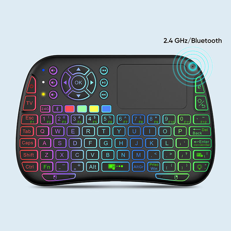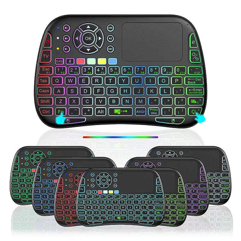 Nueva llegada Mini retroiluminado 2,4g teclado inalámbrico Touch Pad Voice Air Fly Mouse recargable para Android Tv Box