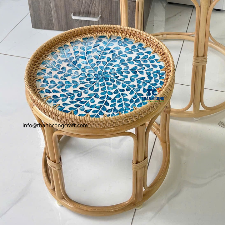 Nombre del producto:Mesa de ratán con incrustaciones de nácar