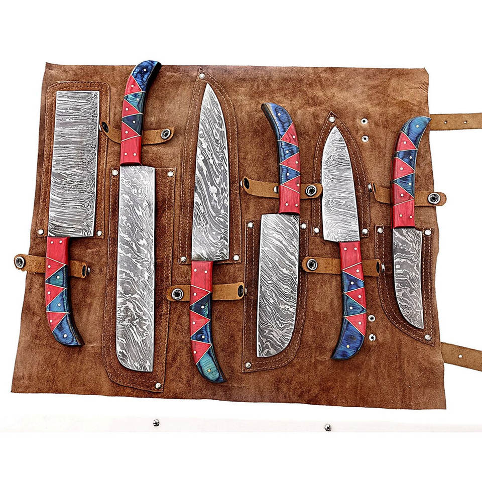 Nuevo Juego de Cuchillos de Chef PRESTIGE BLADES de Acero de Damasco, Ambidiestros, 6 Piezas, Acabado de Hoja Hecho a Mano, Cuchillos de Cocina de Alta Calidad