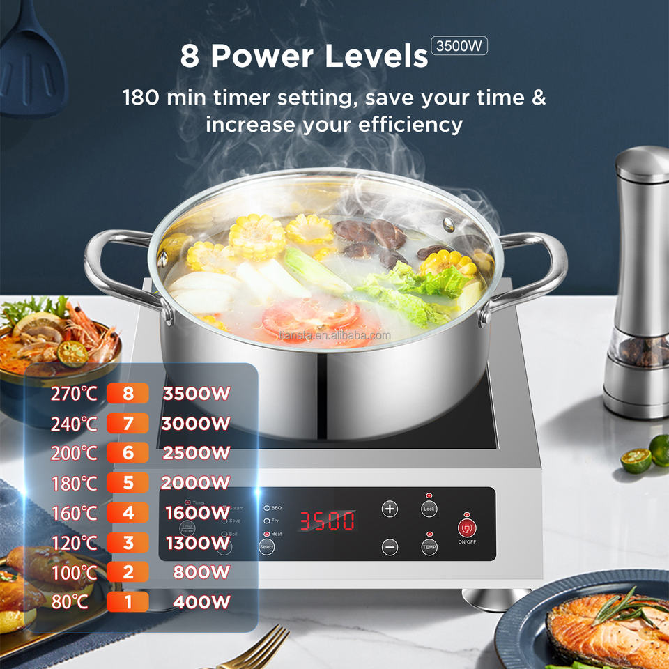 Estufa de Inducción Comercial de Acero Inoxidable con Control de Botones de 3500w