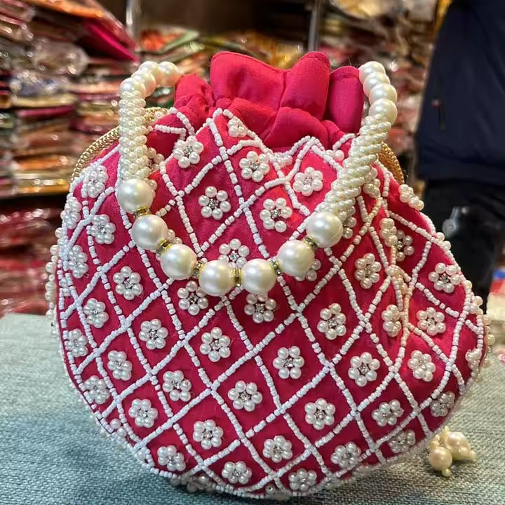 Nombre del producto:Perla N perlas embellecido Potli con mango de cuerda