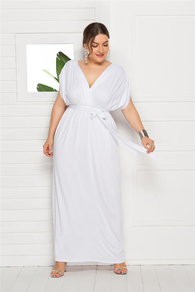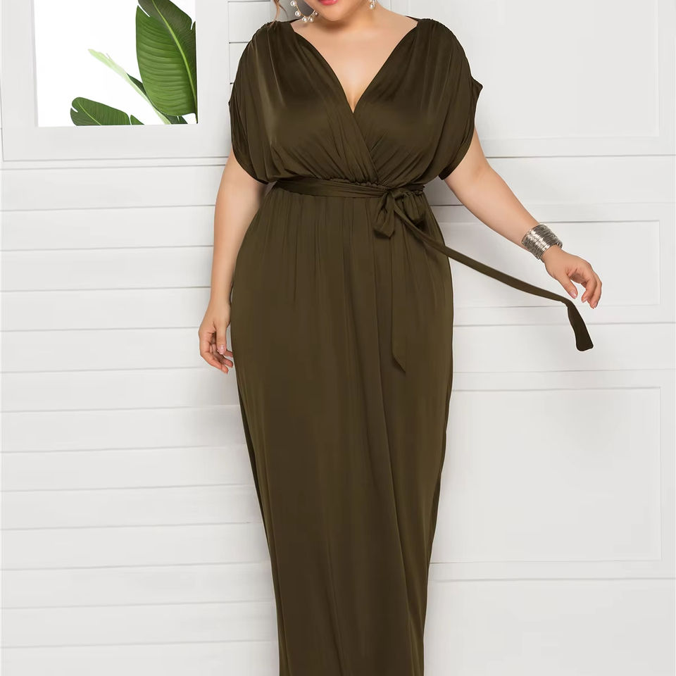 Vestido Vintage de Talla Grande para Mujer, Maxi Sexy, Simple, Color Sólido, Cuello en V, Holgado, para Amazon Wish, Novedad