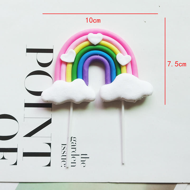 Recién llegado, adorno de pastel de arcilla polimérica, Nube de arco iris, feliz cumpleaños, fiesta de boda, adorno de pastel para hornear para niños
