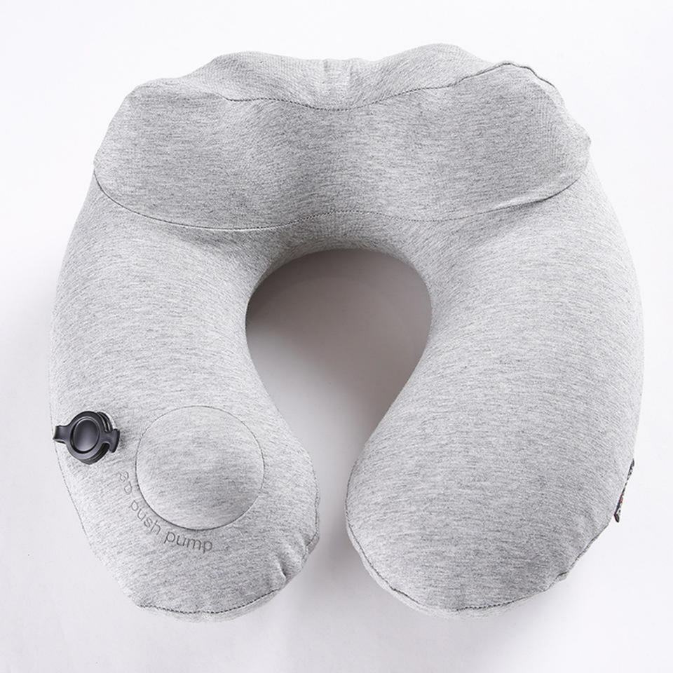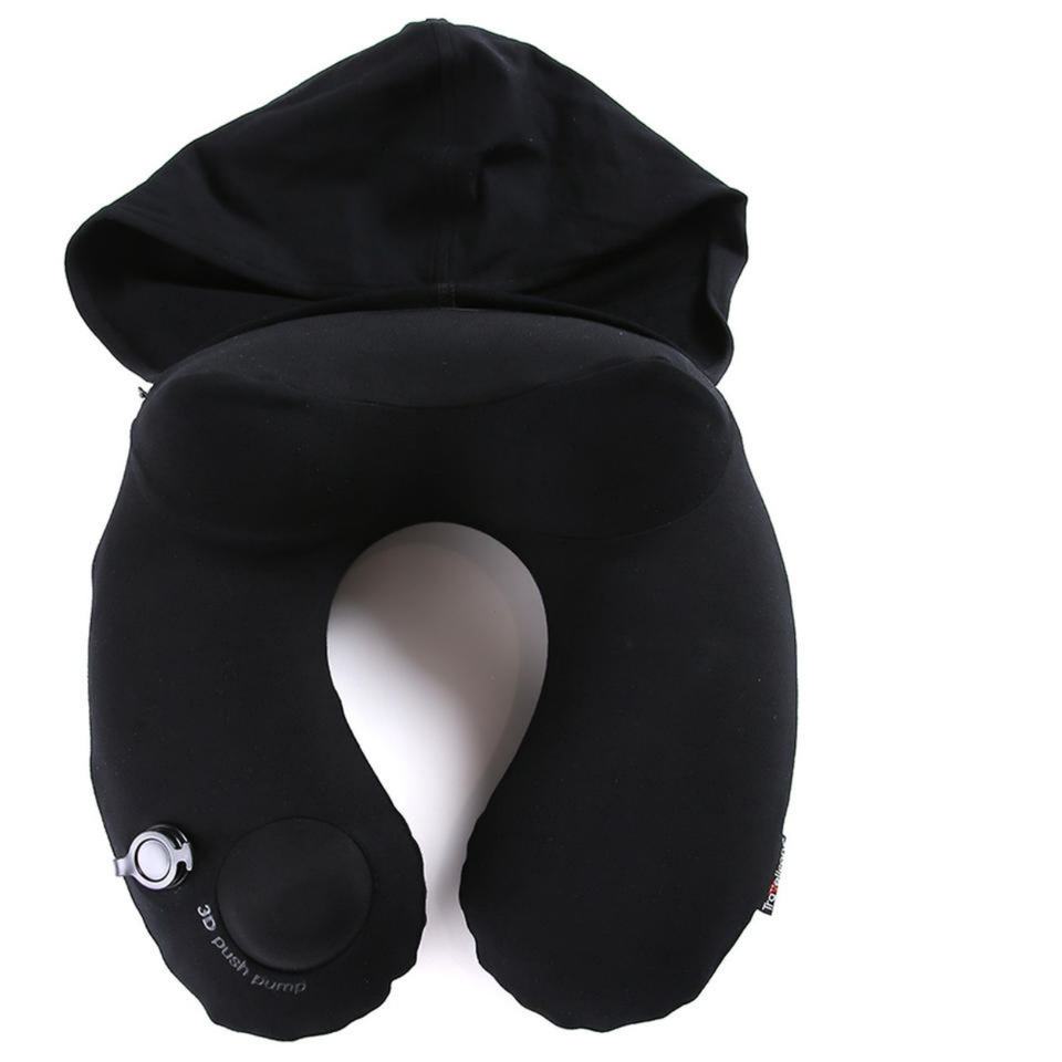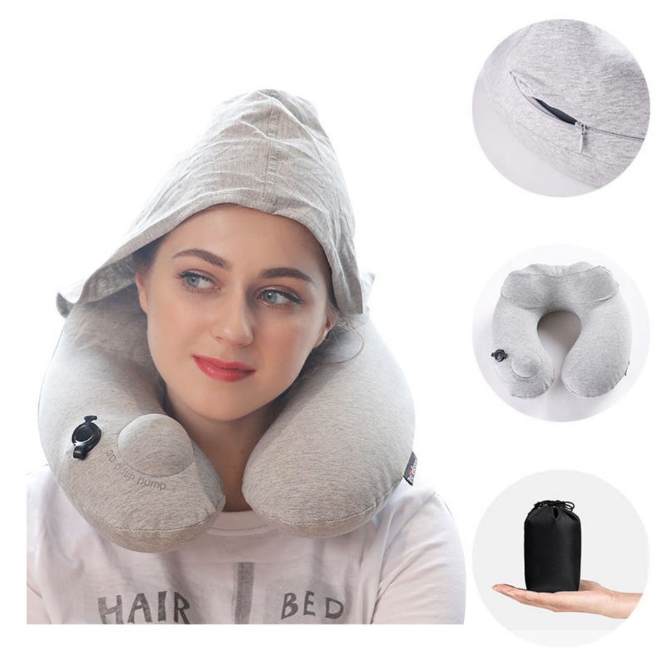 Almohada de Viaje Inflable Portátil en Forma de U, con Capucha, Plegable, para Masaje de Cuello, Ideal para Oficina y Avión