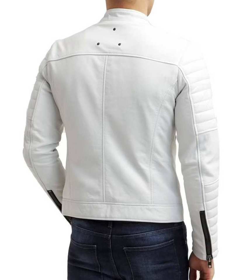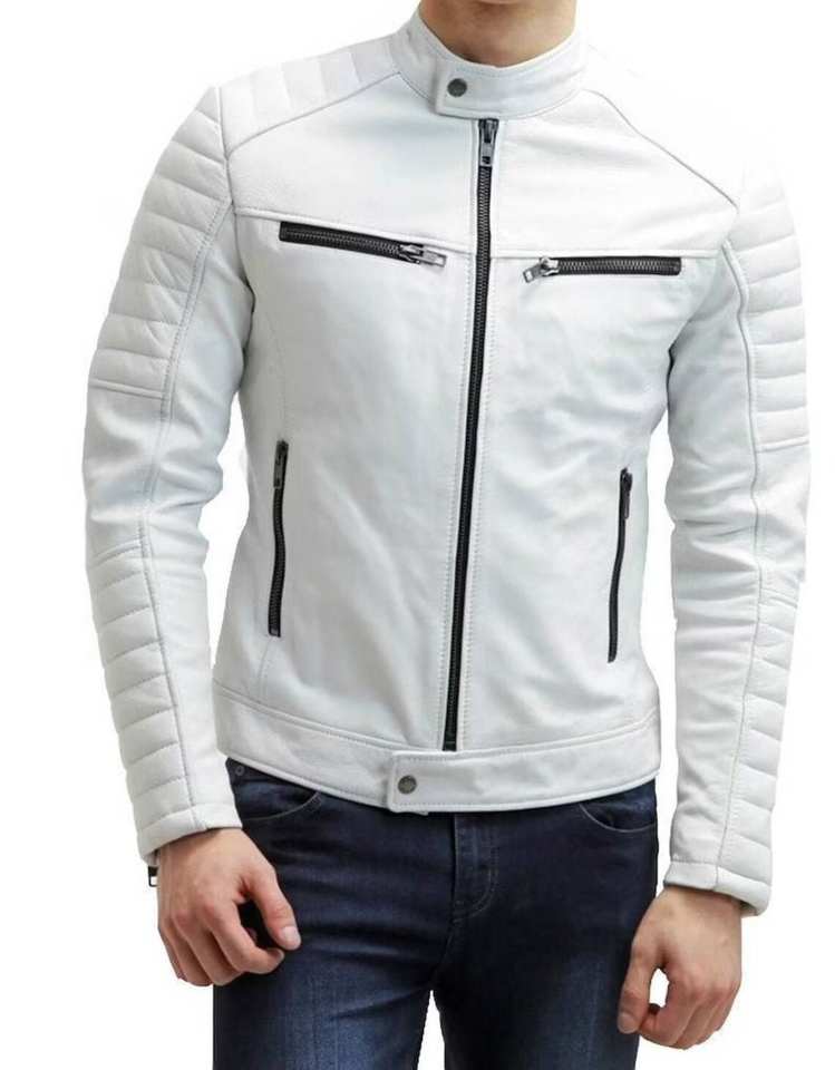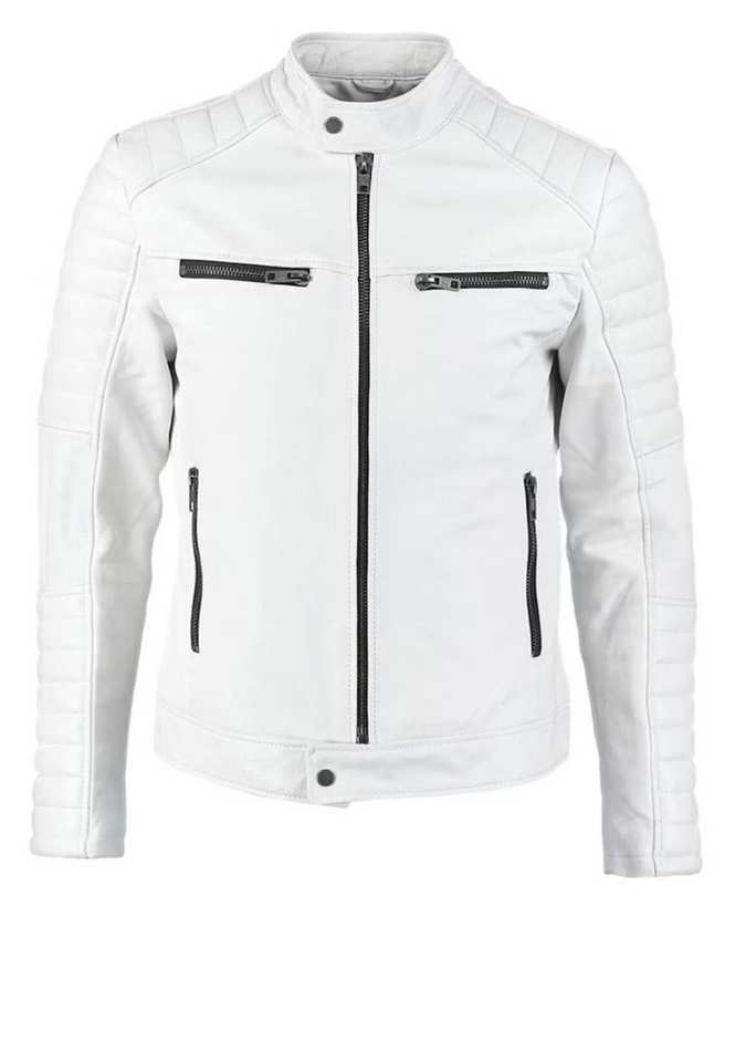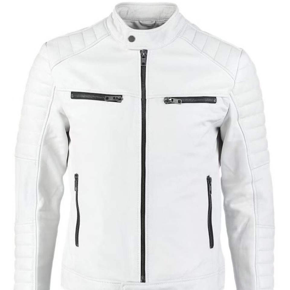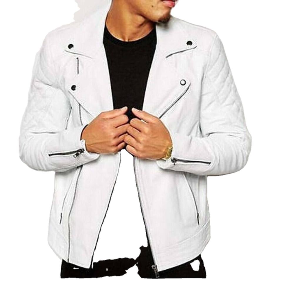 Chaqueta de Cuero de Diseño Personalizado de Primera Calidad, Chaqueta de Motociclista para Hombre, Chaqueta de Cuero Original Blanca