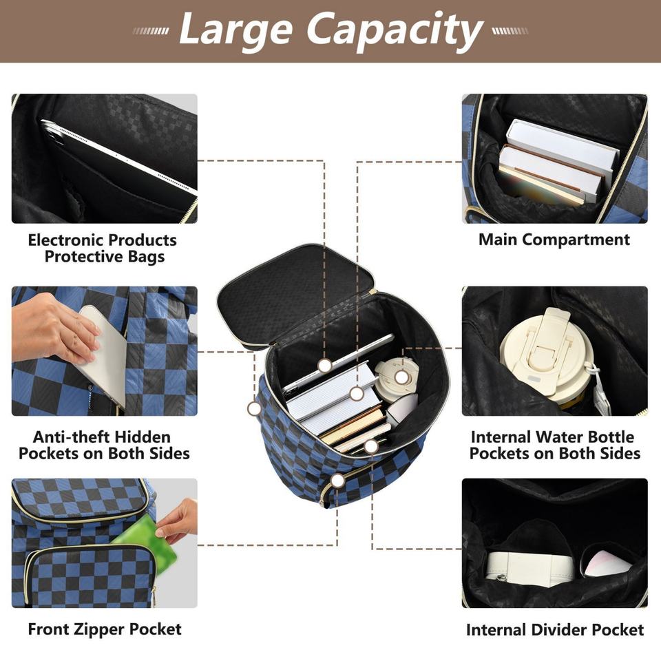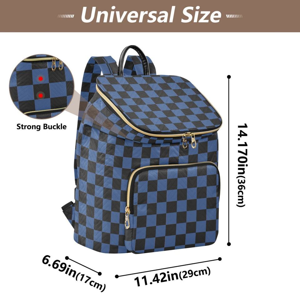Nuevo Producto, Mochila Deportiva Personalizada Azul a Cuadros, Cierre de Cremallera, Diseño con Patrón de Personajes
