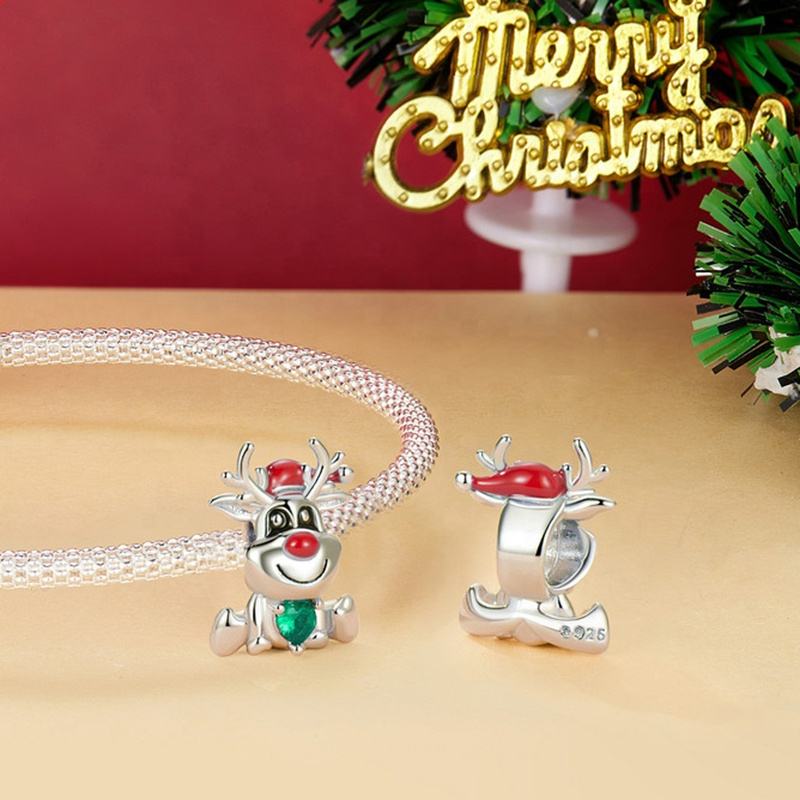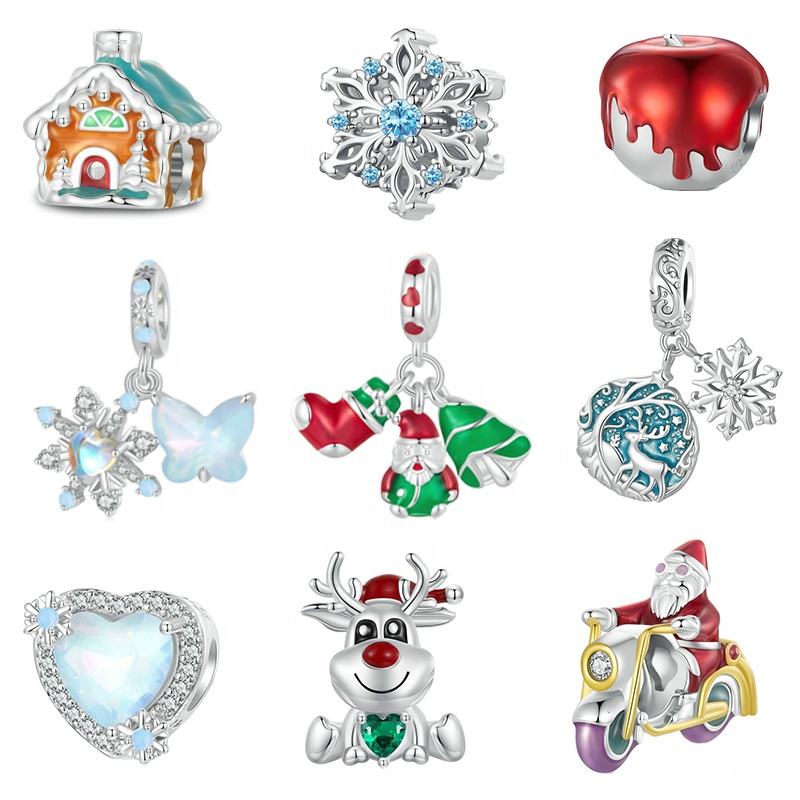 Recién llegado, joyería de esmalte de plata 925 pura, abalorios navideños luminosos creativos aptos para pulsera y collar Pan