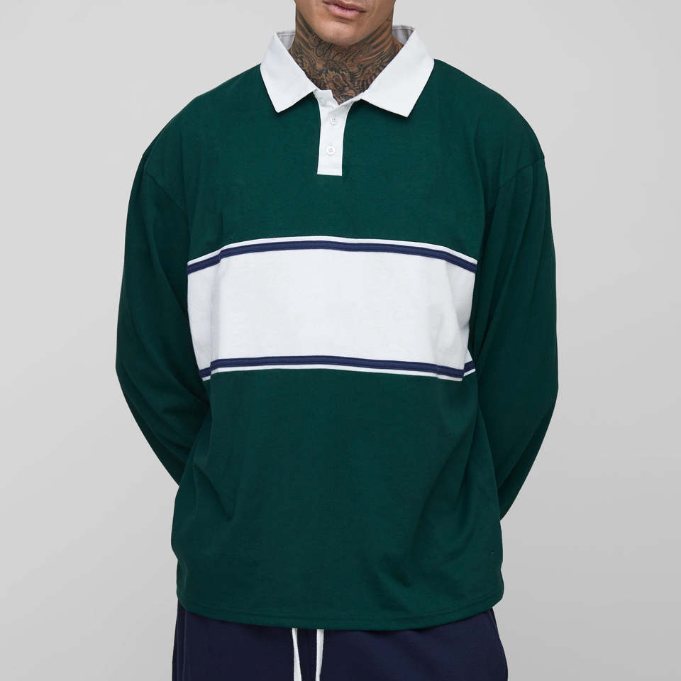 Camisetas de Rugby de Alta Calidad, Transpirables, Antiarrugas, de Dos Colores, con Cierre de 3 Botones, 100% Algodón, Manga Larga, a Rayas