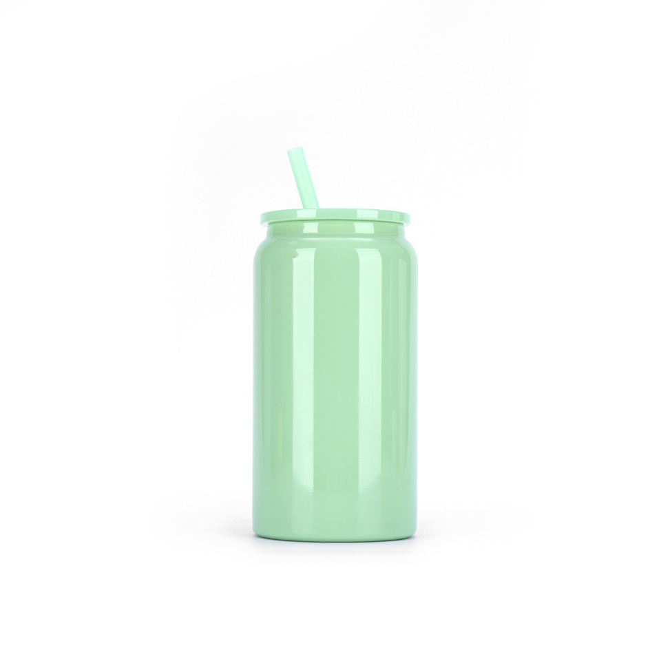 Nueva Llegada RTS 16oz Doble Pared Vacío Colorido Sublimación Frasco de Acero Inoxidable Lata de Soda con Tapa Color Pajita Para Regalo