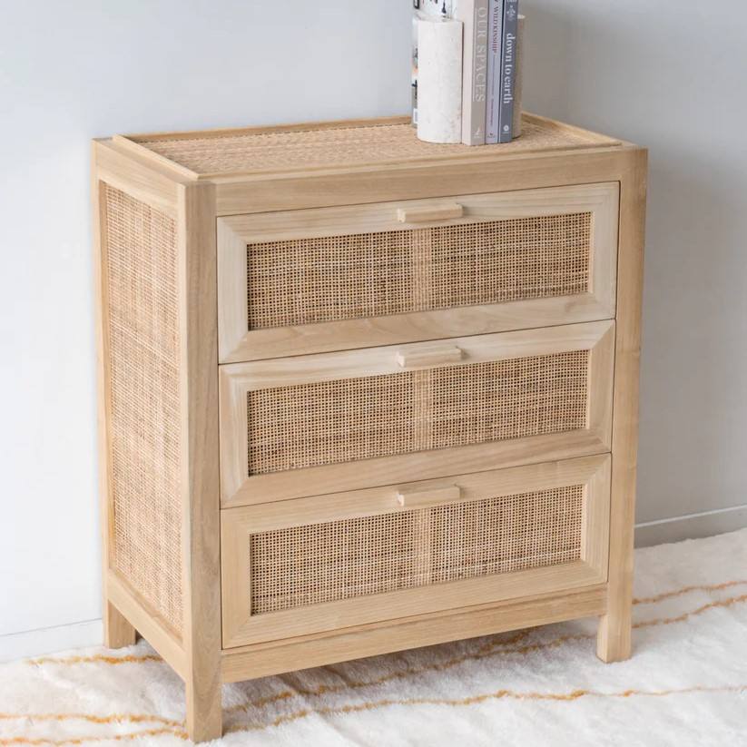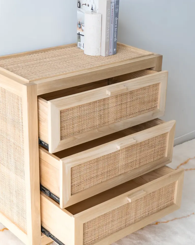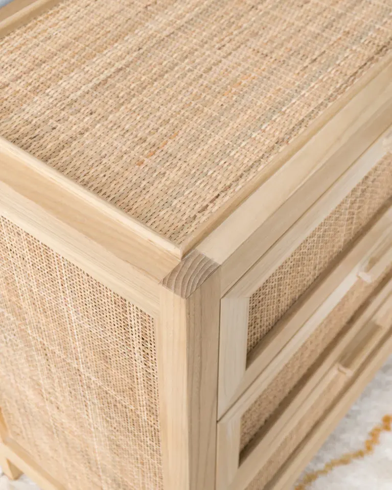 Nombre del producto:Cómoda de Madera con Cajones de Ratán