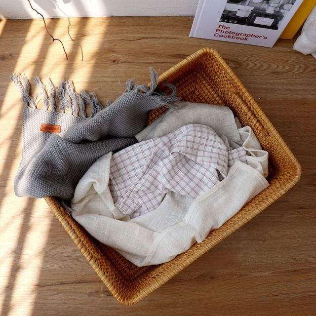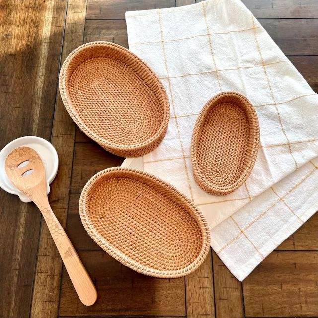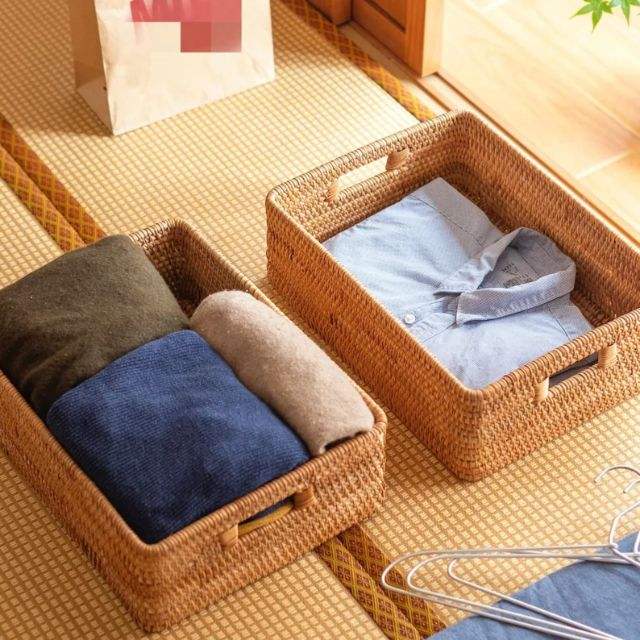 Recién llegado, bandeja de mesa redonda de ratán rectangular, bandeja de almacenamiento multifuncional decorativa tejida a mano para almacenamiento y organización en el hogar