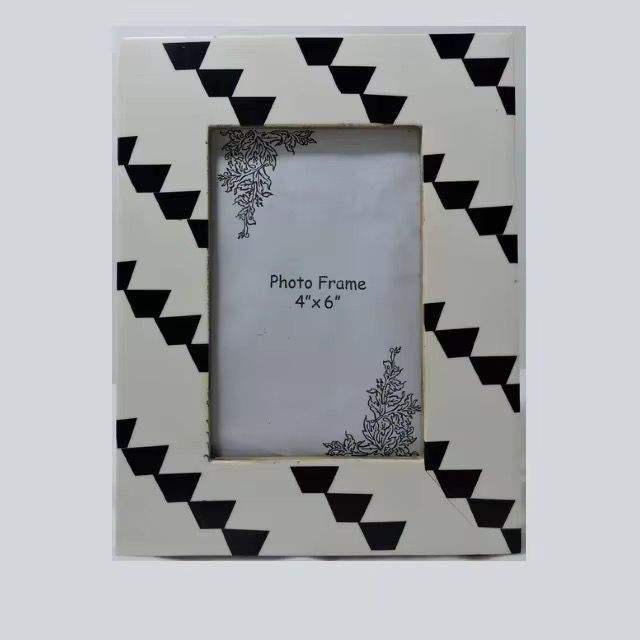 Recién llegado, marcos de fotos de madera verde y blanco con incrustaciones de resina para decoración de mesa de regalo, marco de fotos moderno antiguo para colgar en la pared