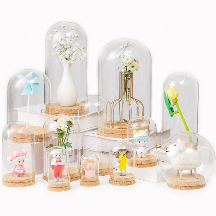 Novedad: Cúpula de Cristal Pequeña Reutilizable con Base de Corcho, Cubierta para Exhibición de Flores, para Decoración de Fiestas, Hogar y Bodas