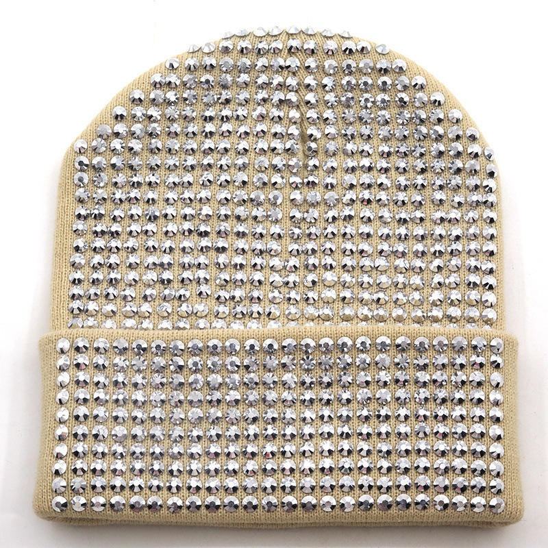 Nuevo Gorro de Punto con Pedrería para Mujer, Gorro de Invierno Brillante con Cristales, Gorro Moderno con Diferentes Tipos de Piedras