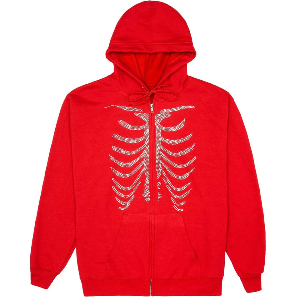 Nueva llegada: Sudadera con capucha y cremallera con pedrería brillante, cómoda y casual.