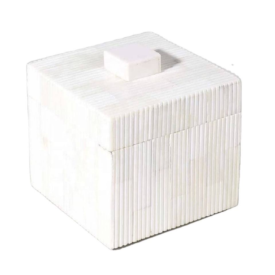 Caja de Almacenamiento Rectangular Moderna con Incrustaciones de Hueso Blanco y Tapa, para Joyería, Decoración de Mesa de Centro
