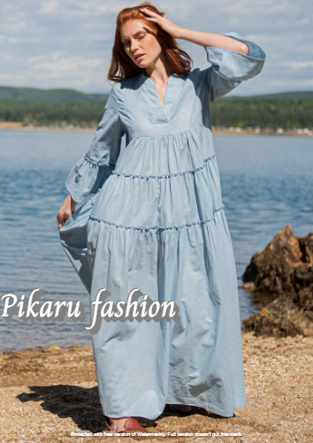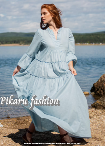 Nueva llegada de volantes de verano de tres cuartos de manga con cuello en V hasta el suelo Casual largo Maxi para las mujeres